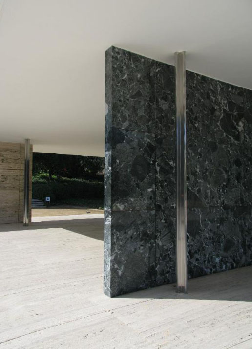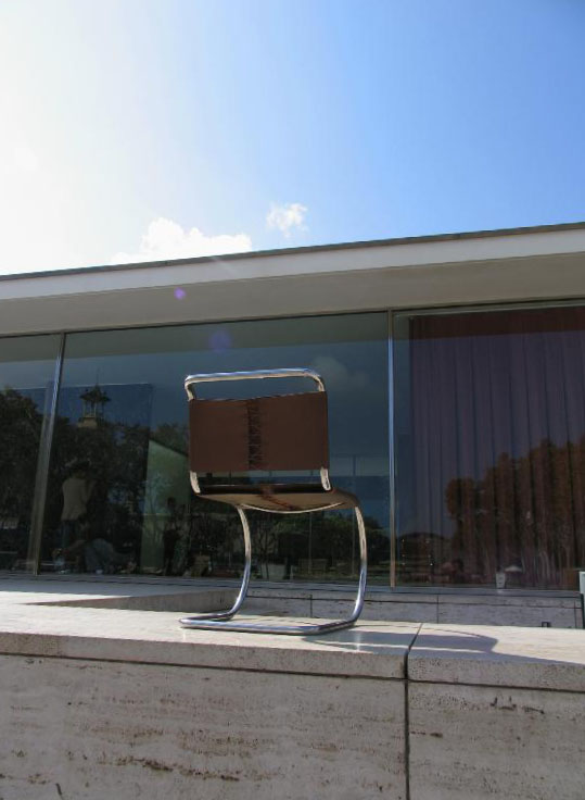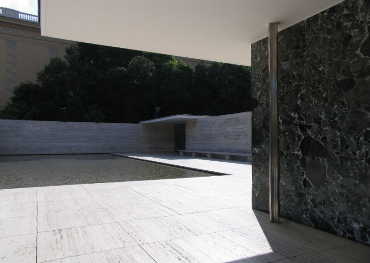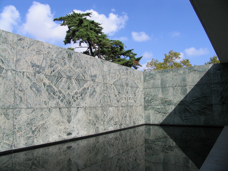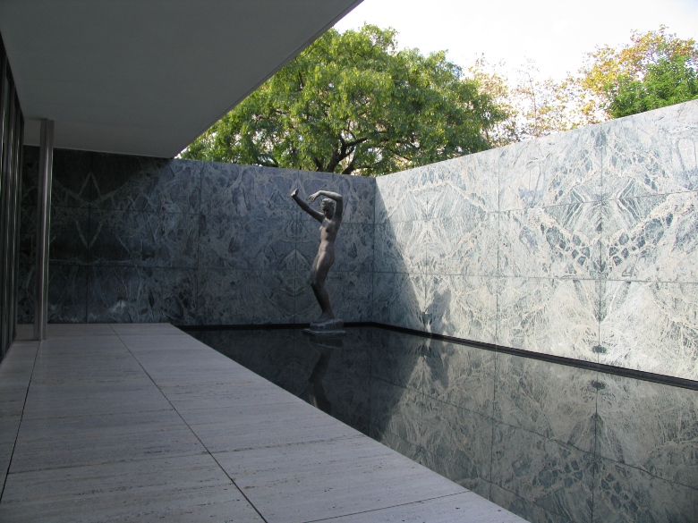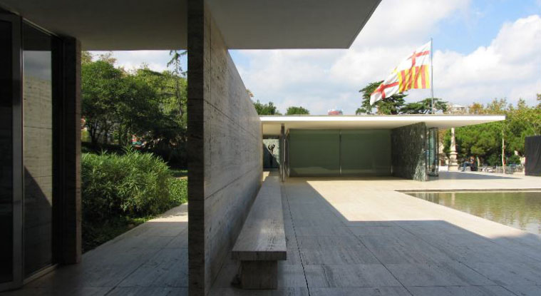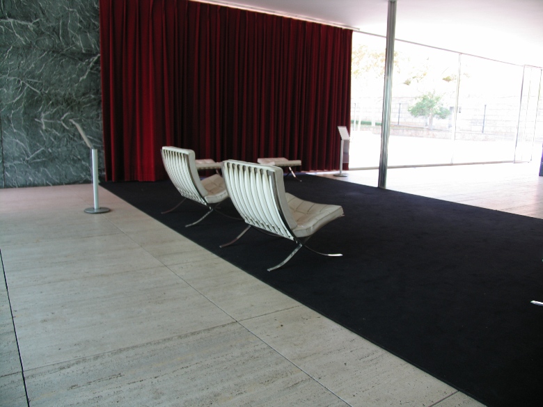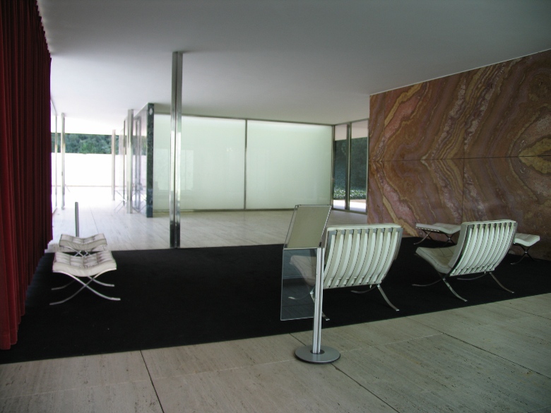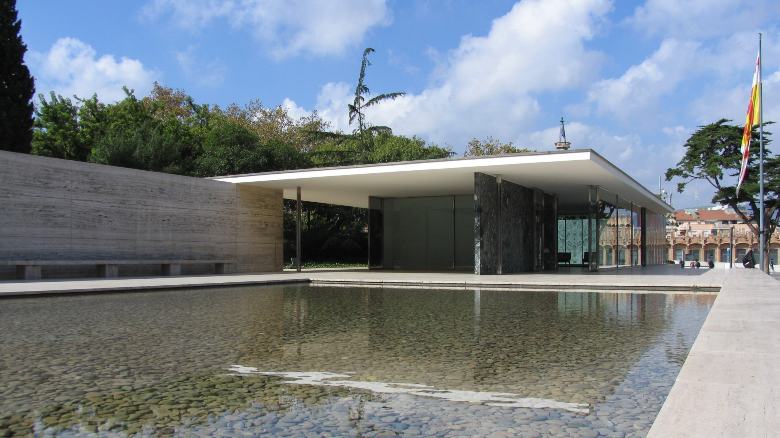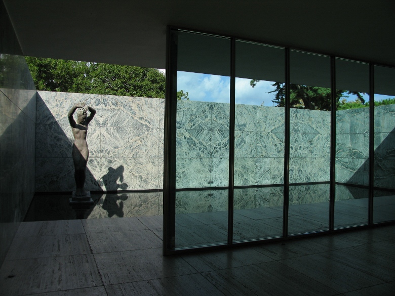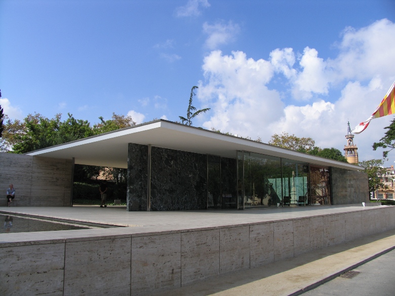 バルセロナ博覧会の時に、ミース・ファン・デル・ローエが設計した建物が復元されています。 ミースの建築思想そのままに天井と壁だけが存在し、ぎりぎりまで削ぎとられて建っている姿は非常にミニマルで、普遍的で、たいへん美しいです。代表作の1つ。