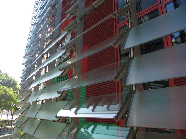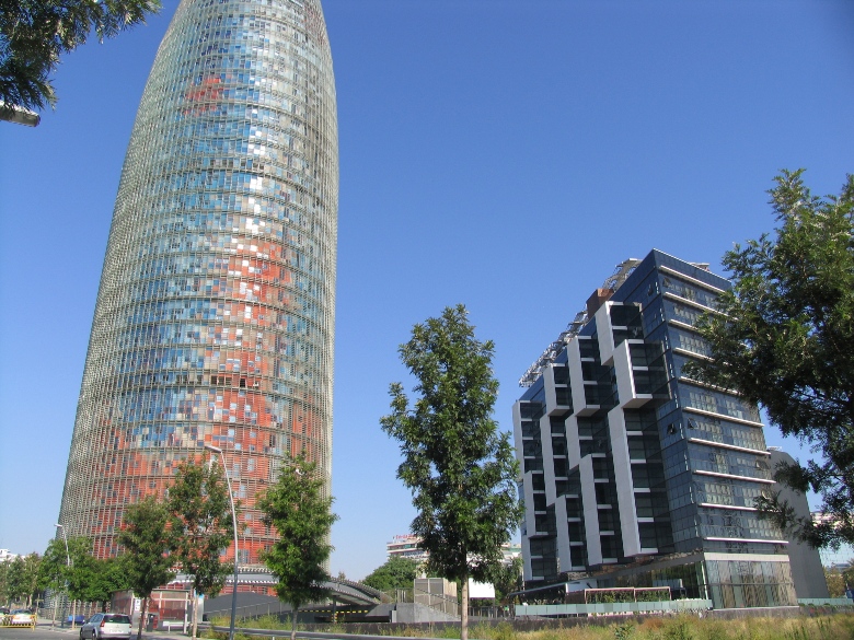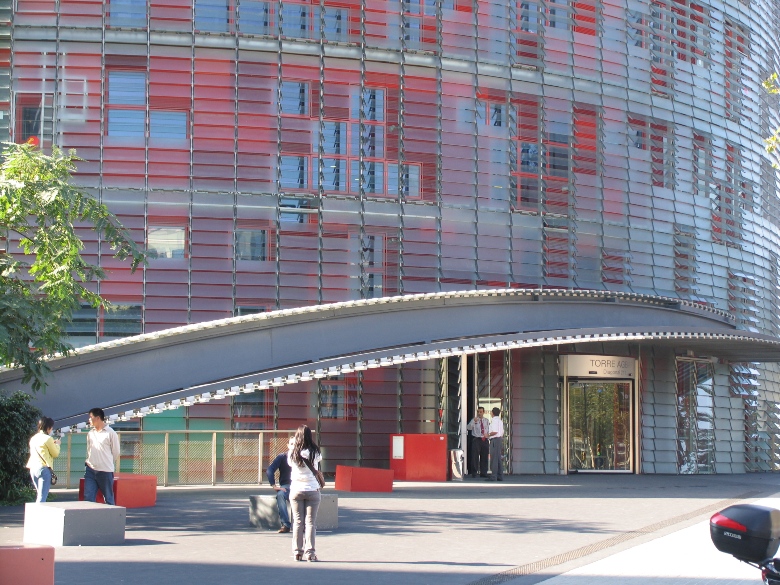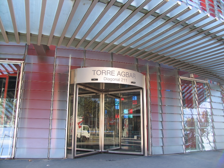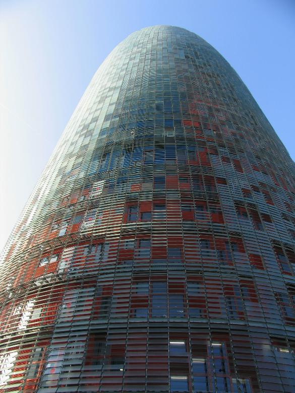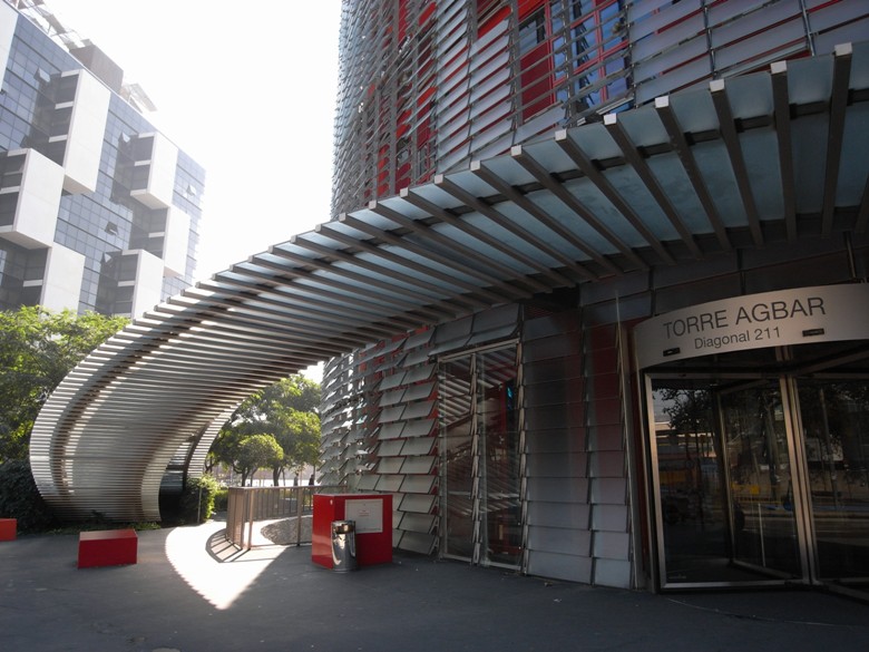 アグバル・タワー(アグアス・デ・バルセロナ)は、ジャン・ヌーベルが設計したバルセロナ水道会社のビルです。アラブ世界研究所設計で一躍有名になった彼らしく、ガラスを多用した建築になっています。