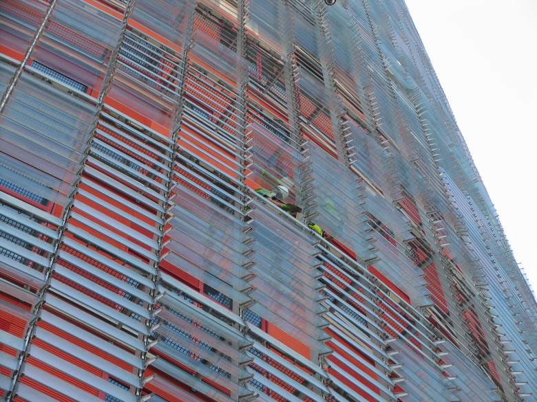 地上142メートル・32階建のオフィスビルで、無秩序なタイルの組み合わせは、ガウディのデザインに敬意を払ったそうでが、