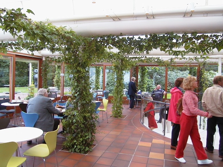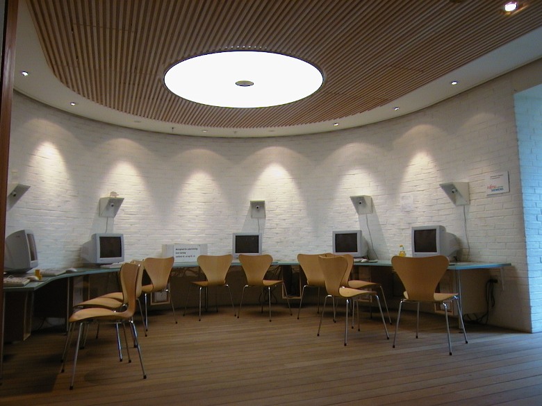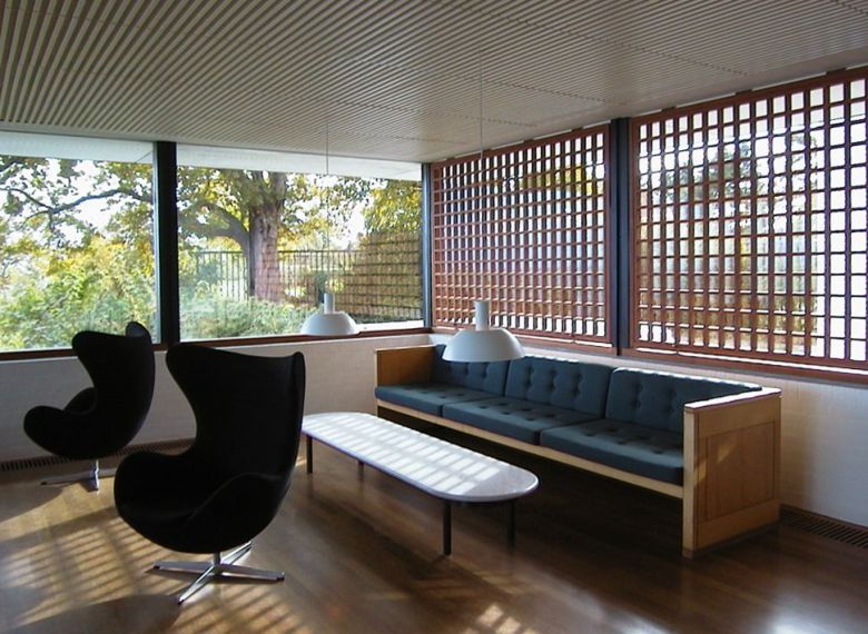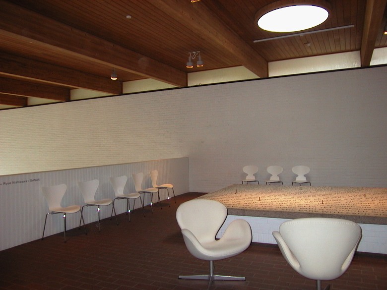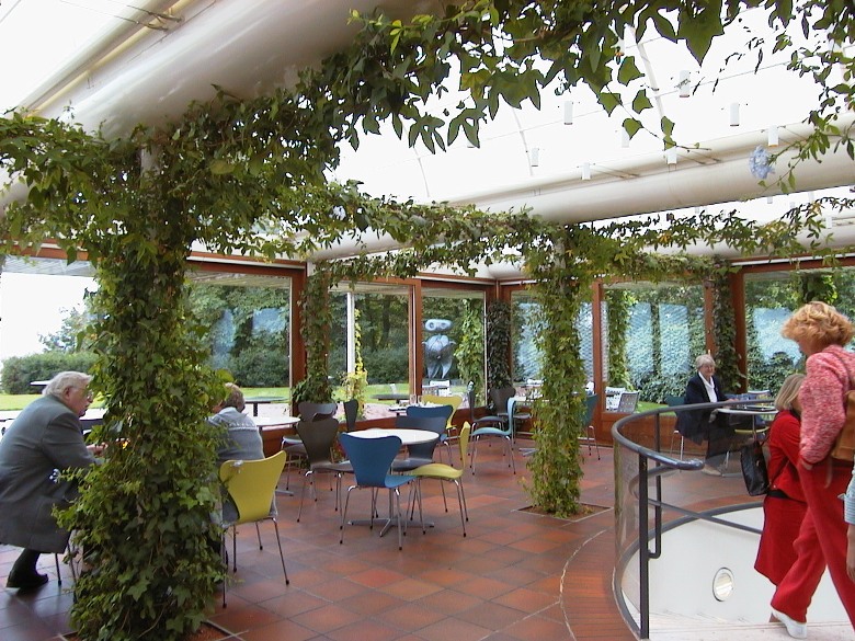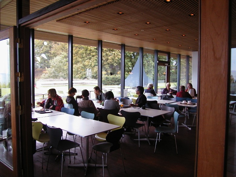 世界で一番美しい、ガラス張りの回遊式美術館と言われています。また世界でも有数のモダンアートコレクションを有することで知られており、庭園にも多くのアートが点在しています。ヤコブセンの家具もいたるところに使用されていました。