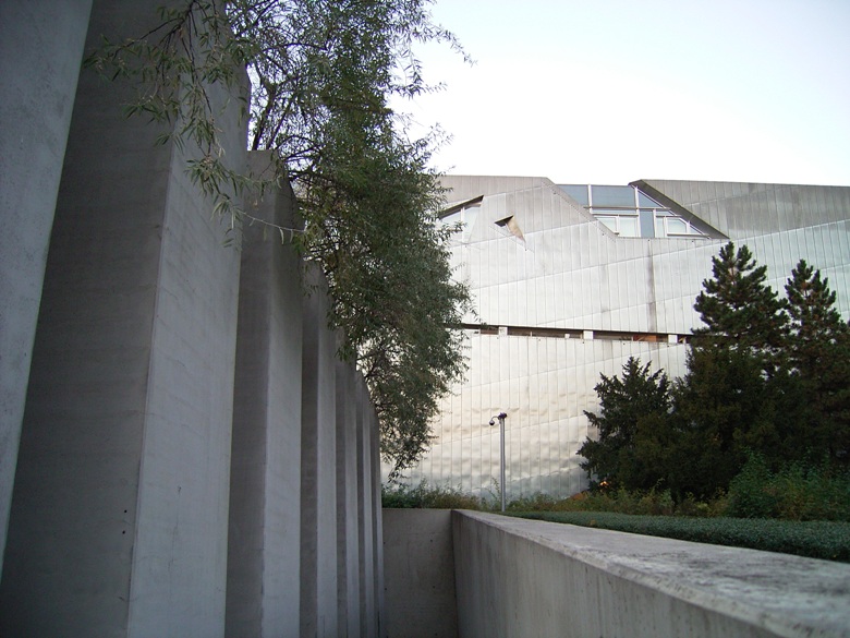 ユダヤ博物館はダニエル・リベスキンドの設計。細長い長方形の折紙を折りたたんだような形に見えます。鋭角に切り裂かれたような外観のスリットが特徴的。歴史的に思えば過激なデザインだなと感じましたが、二度と繰り返さないという意味で、強いメッセージになっています。