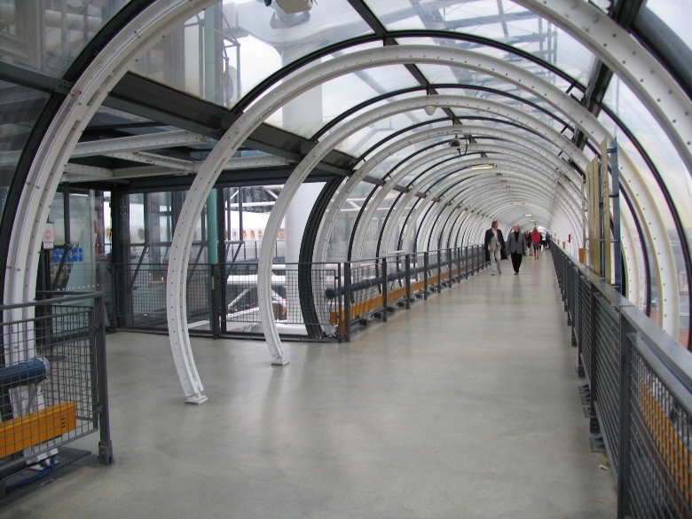 建築デザインは彩色されたむき出しのパイプとガラス面で造られた、