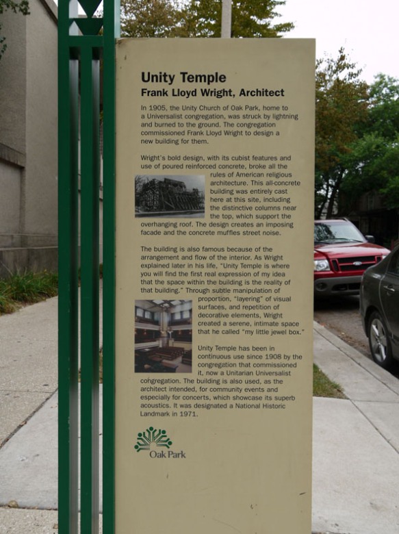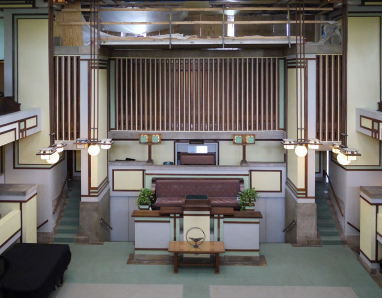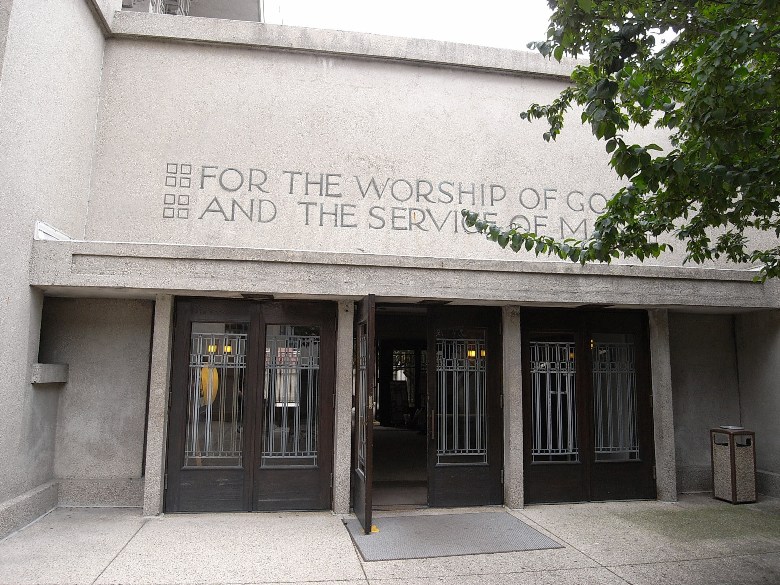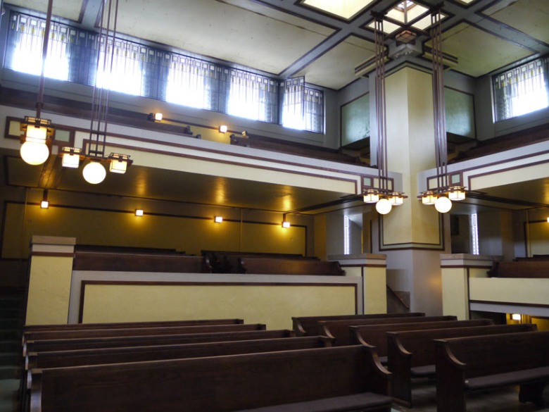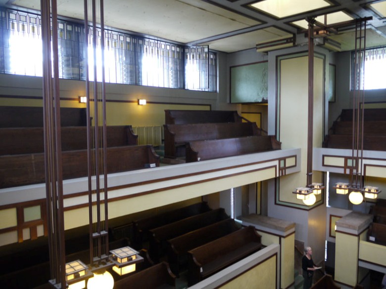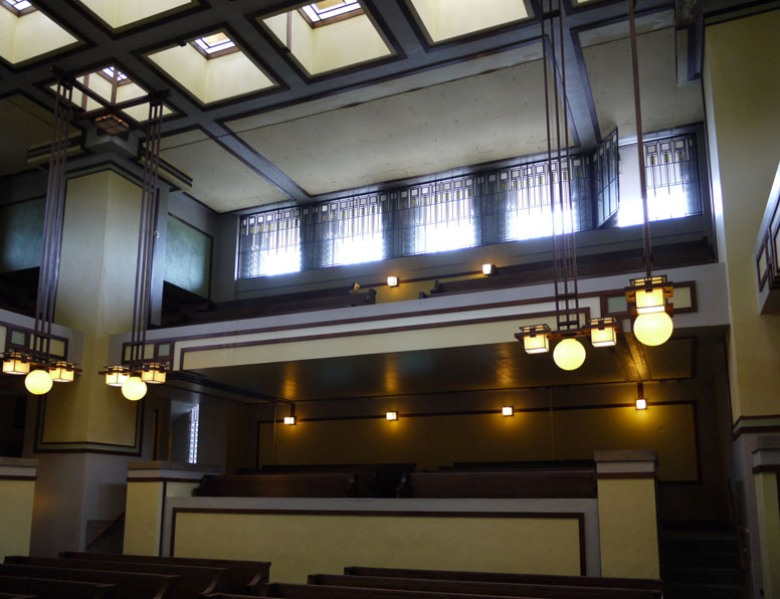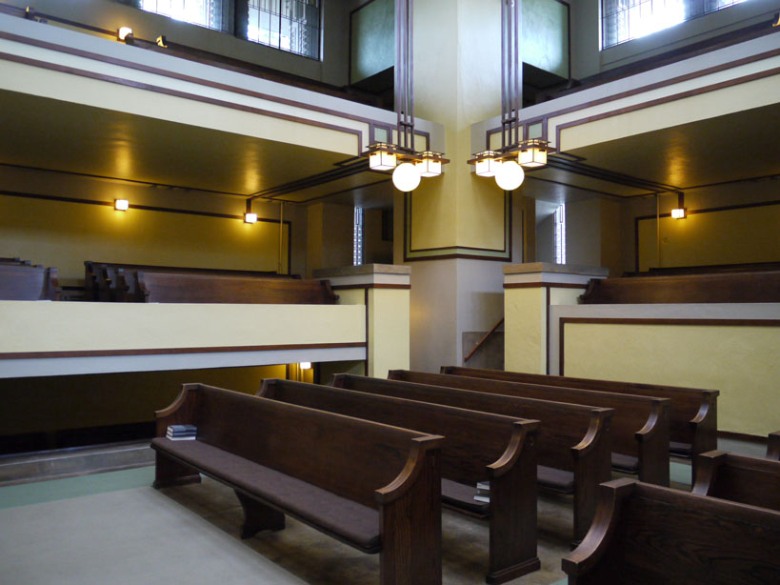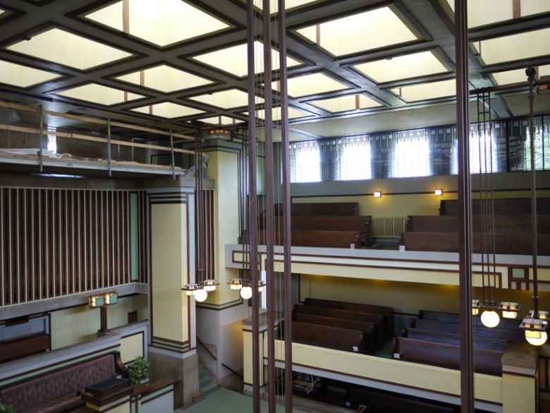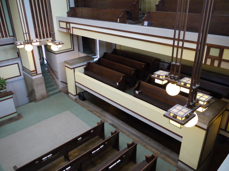 ユニティ・テンプルはライトにとって初めてのコンクリート造りでもありました。テンプルとは神のみを礼拝する神殿を意味しており、キリストの教会ではありません。