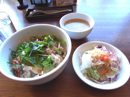 TABLE FOR TWOのランチセットをオーダーしました。ベトナム風まぜごはんは薬味がたくさんでヘルシー。タイ米が美味しい。