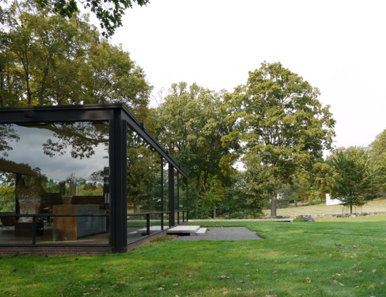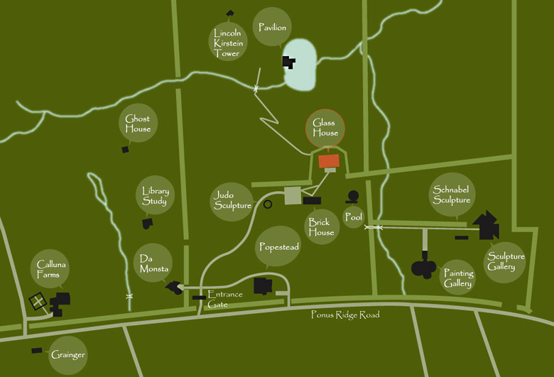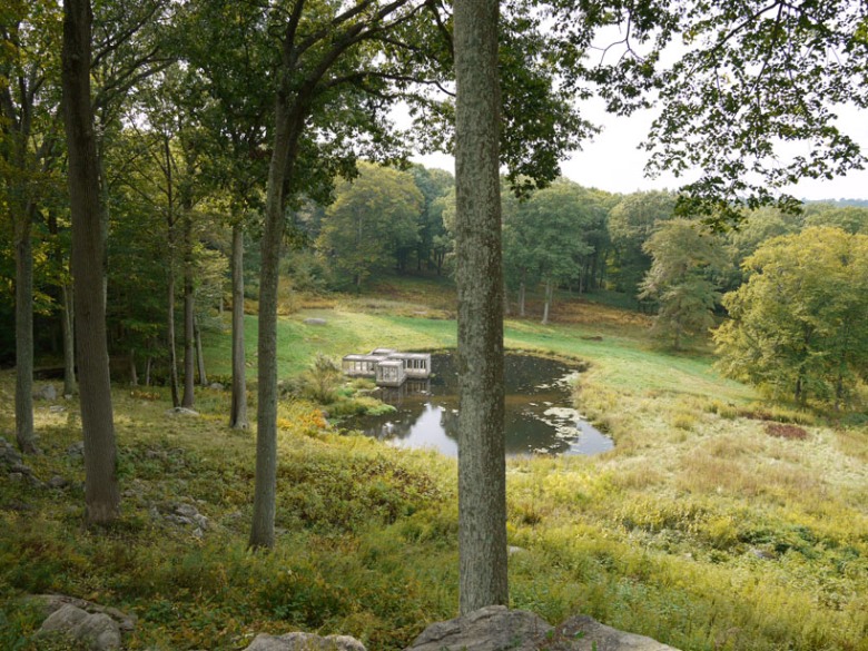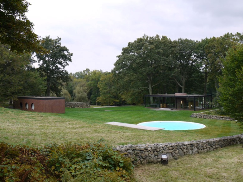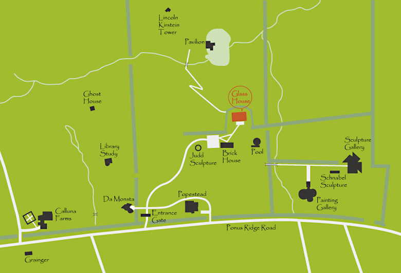 ここはマンハッタンから電車で1時間程にあるニューカナーンという街にあります。 フィリップ・ジョンソンは約19万平方メートルにも及ぶ敷地の中に、ガラスの家を含め、10もの建物をその森のなかに建築しました。道楽の舞台ともいえる敷地全体が、彼の代表作になりました。