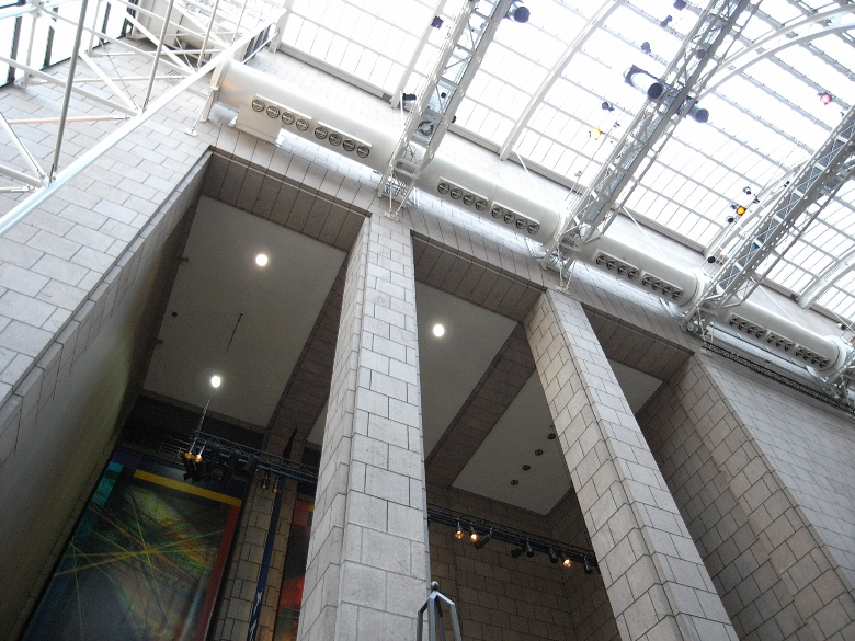 マンハッタンのソニープラザビル(旧AT&Tビル)は、 フィリップ・ジョンソンによるポストモダニズムの代表的な建築になりました。モダニズム建築への批判(合理的すぎる)から生まれたスタイルで、1980年代に流行しました。ビルなので、内部はエントランスのみの撮影です。