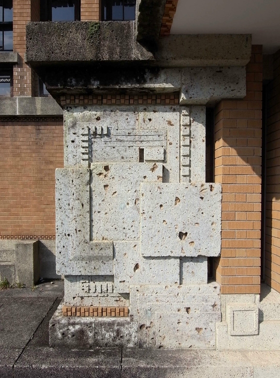 建物全体はテラッコタ、スクラッチレンガ、彫刻などの調和が、装飾性豊かな意匠を実現しています。