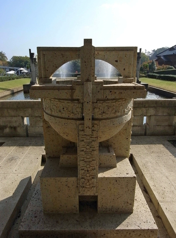 モチーフは平等院鳳凰堂。日本的な石である大谷石を多用しています。