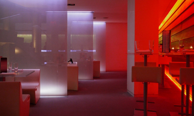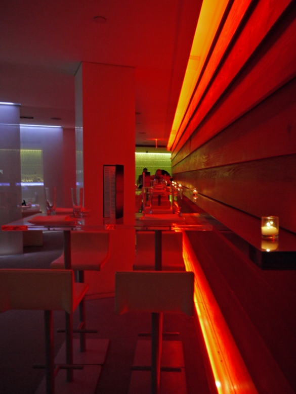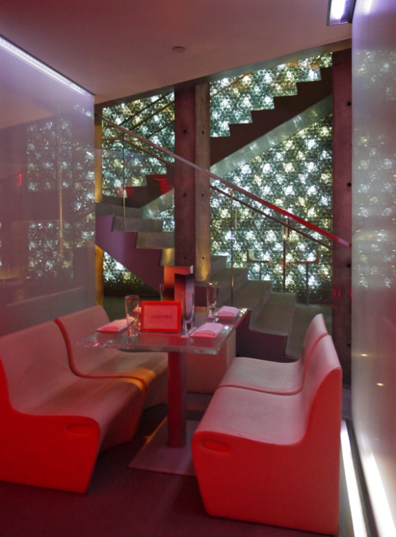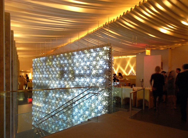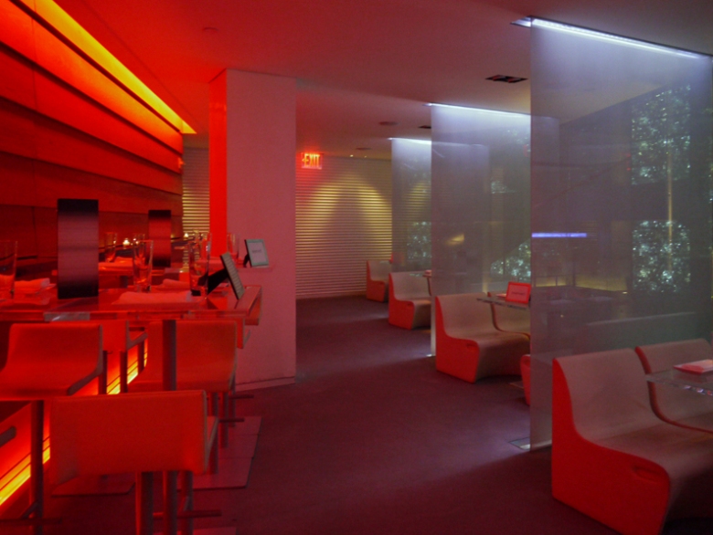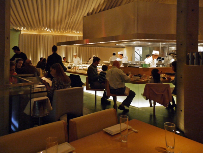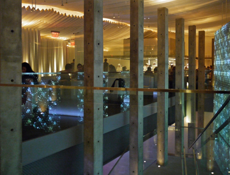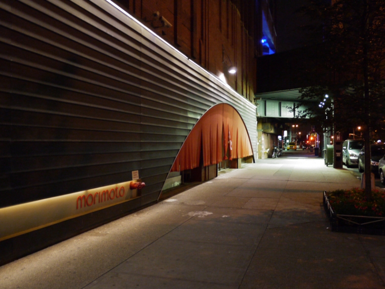 ホットなエリア、ミート・パッキングエリアにある日本食レストラン、MORIMOTO(もりもと)です。 元ノブのシェフで、料理の鉄人、森本正治のお店です。インテリアデザインは安藤忠雄が担当しました。ところどころにその雰囲気が漂っています。
