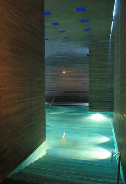 テルメ・ヴァルス・スパセンターは、チューリッヒから電車とバスを乗り継いで約2時間30分、ピーター・ズントーが設計した、スイス山奥にある温泉施設(スパ棟)のことです。