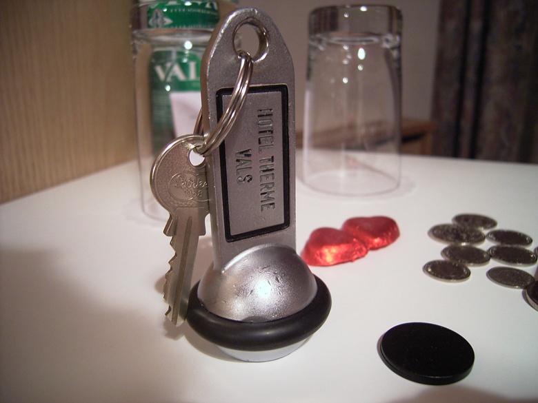 ホテル部屋の鍵と右下の黒いコインのように見えているのがスパにはいるゲートのカギです。