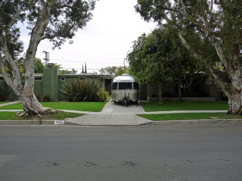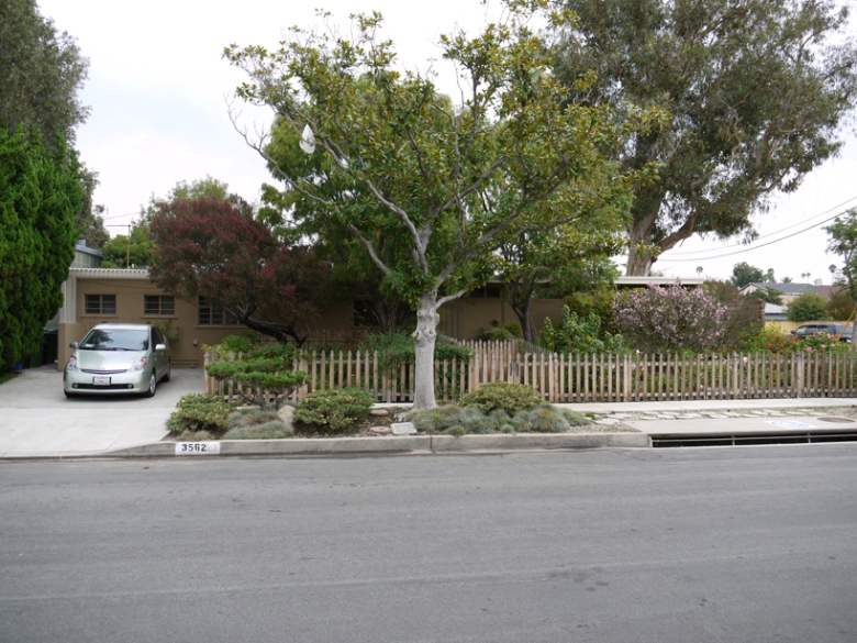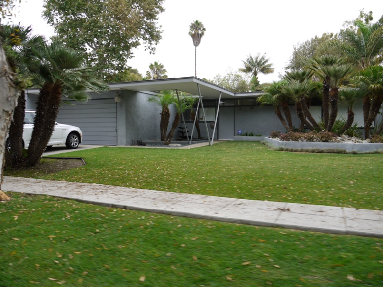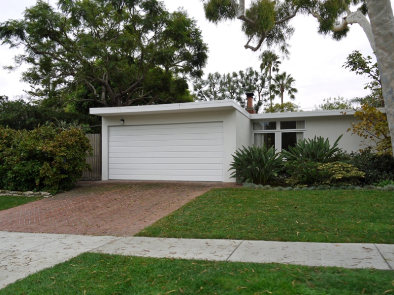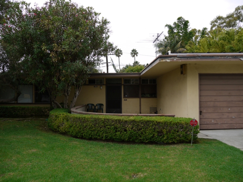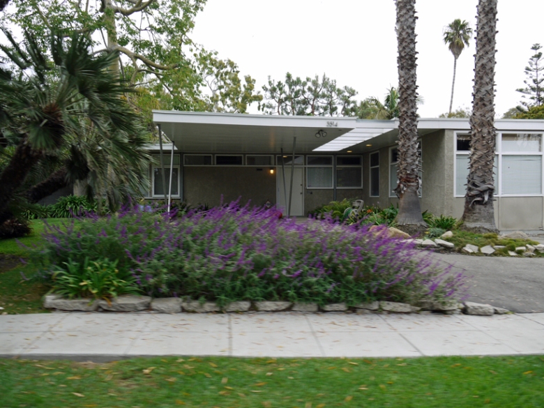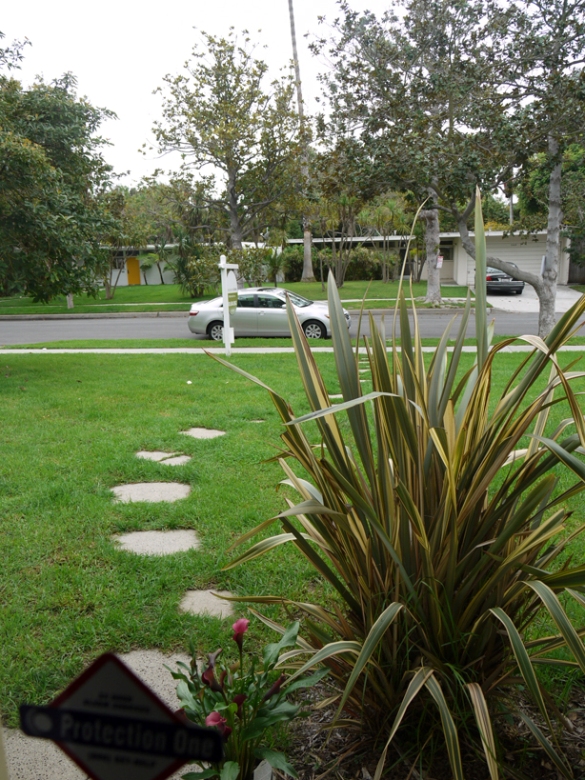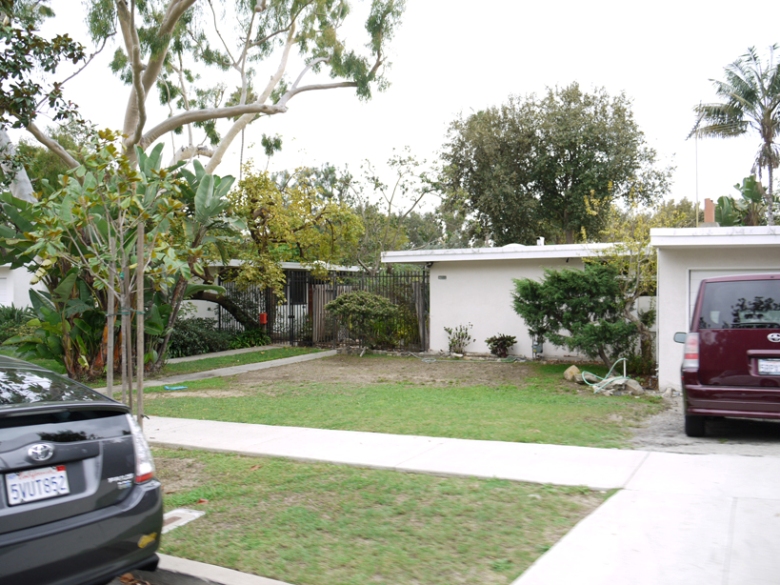 ここはロサンゼルス南西郊外なのに、日本の建て売り住宅ではありえない位の敷地に、素敵なフラットルーフの平屋住宅が建ってます。
