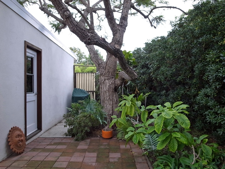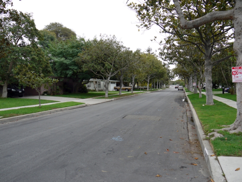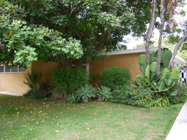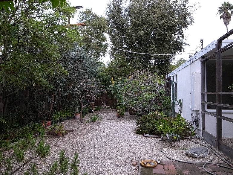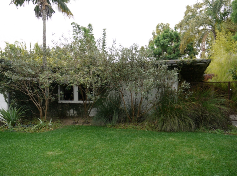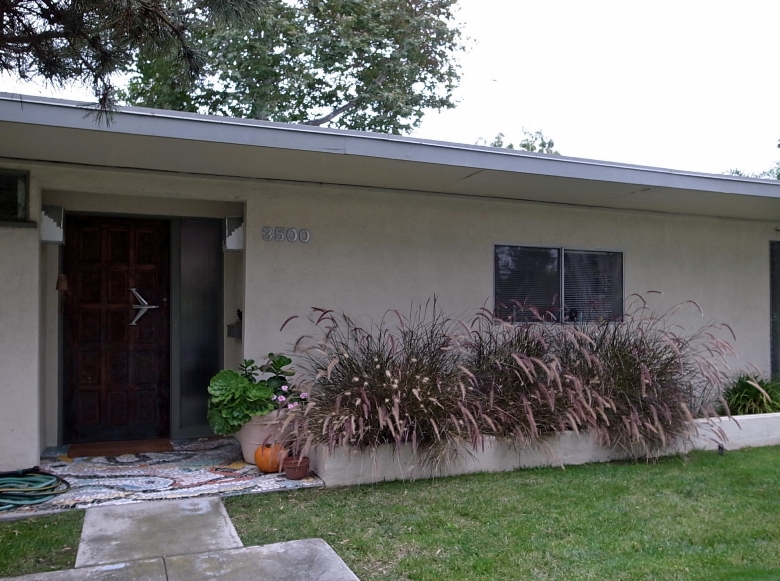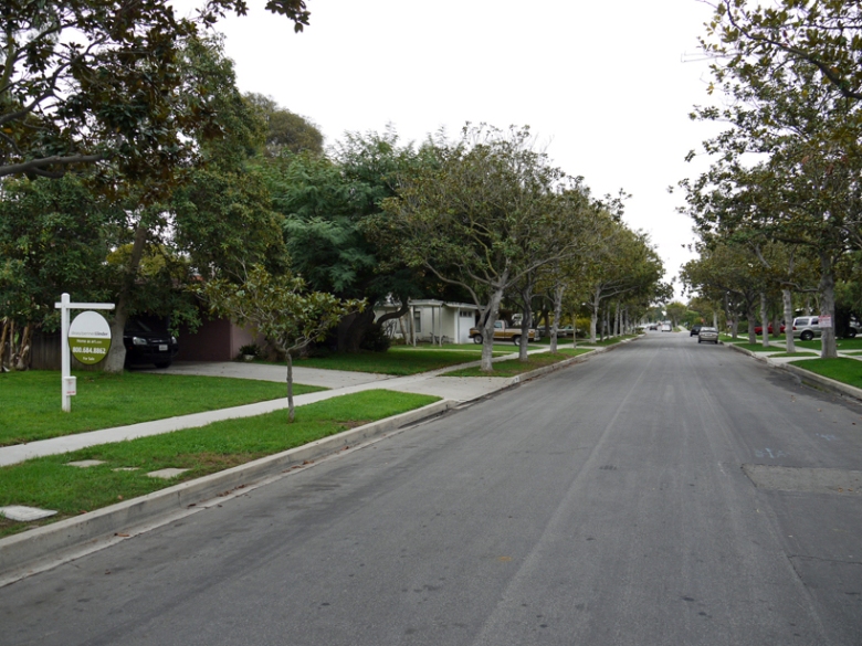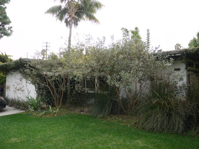 ここはロサンゼルス南西郊外なのに、日本の建て売り住宅ではありえない位の敷地に、素敵なフラットルーフの平屋住宅が建ってます。