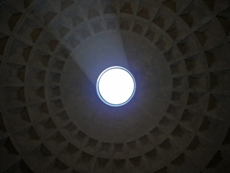 天井中央にある穴のことをオクルス(目)と呼んでいます。なんと直径9メートルもあります。