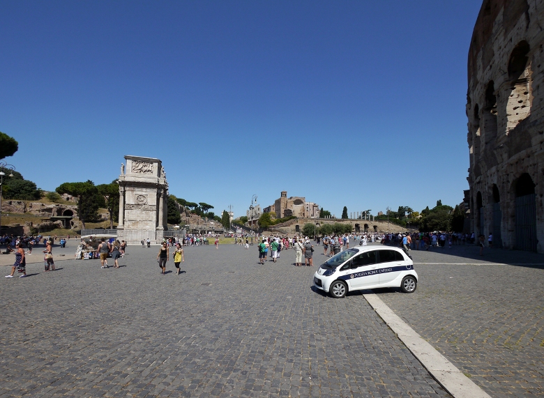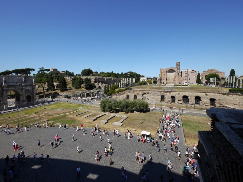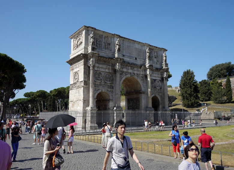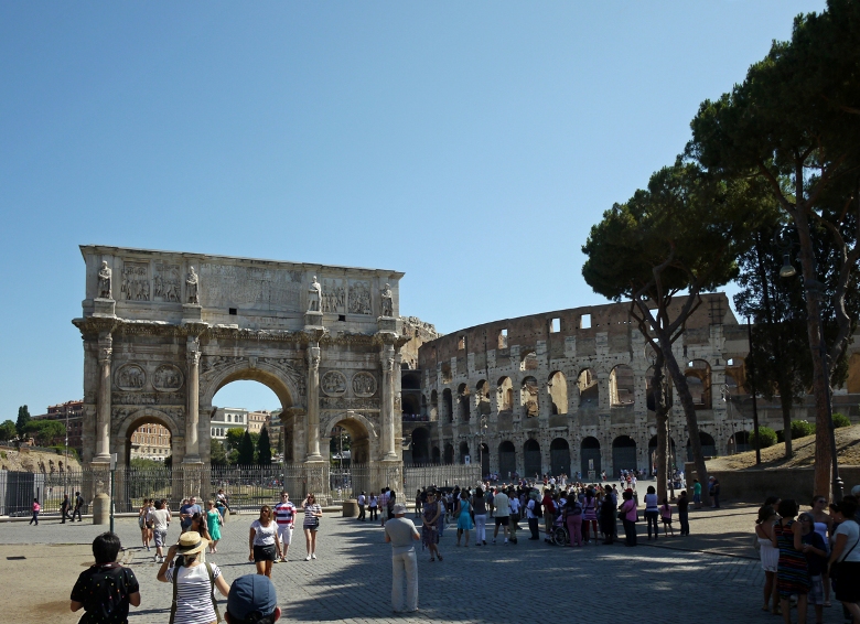 コンスタンティヌス帝の凱旋門とコロッセオ。パリの凱旋門は、この門をモデルにしています。