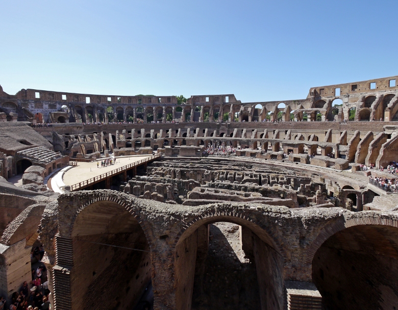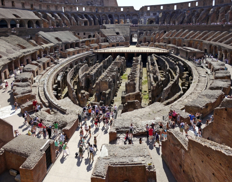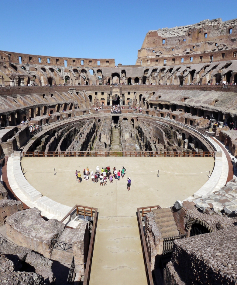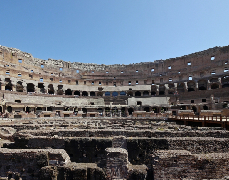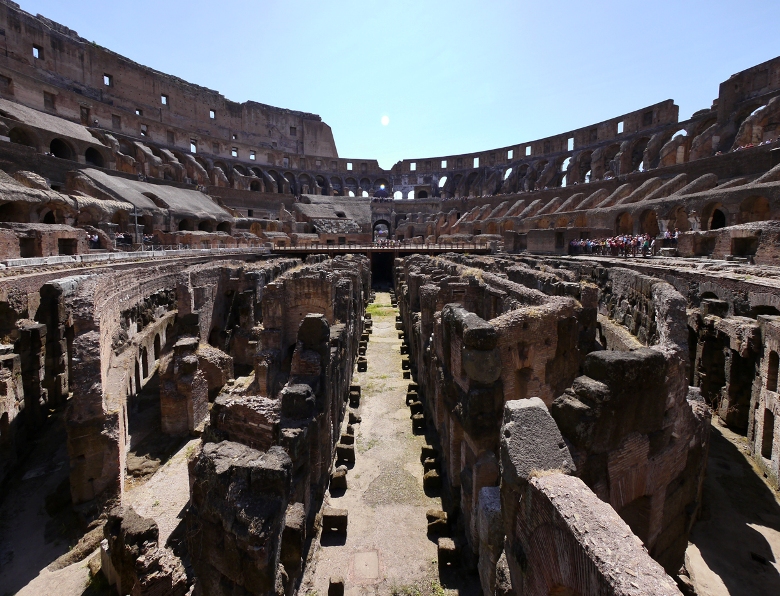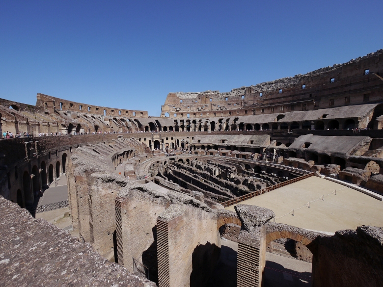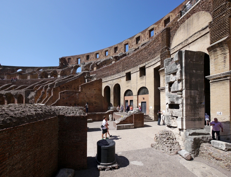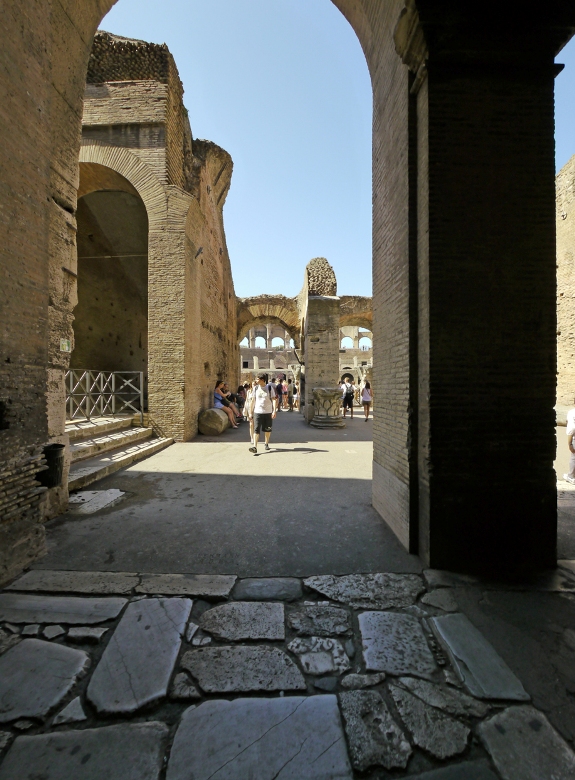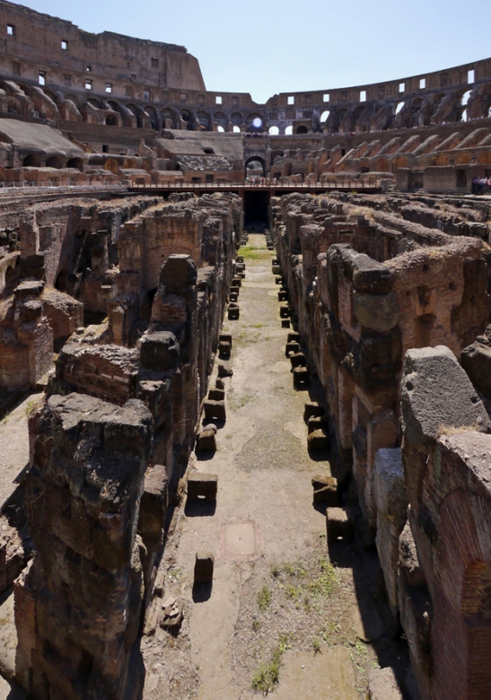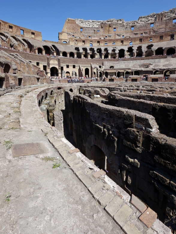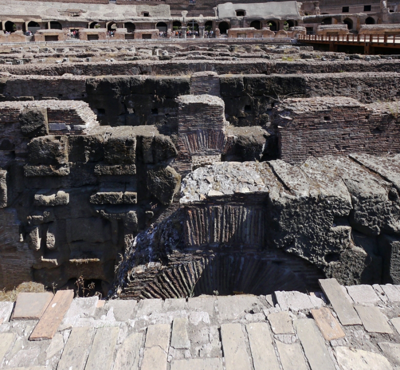 猛獣、囚人、剣闘士を収容していた地下施設(舞台装置準備スペース)は、床が崩落していて内部を見ることが出来ます。