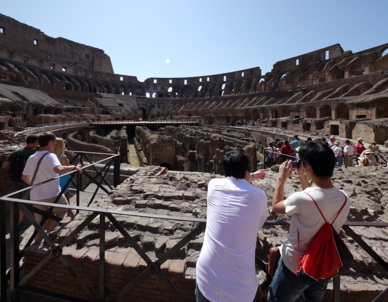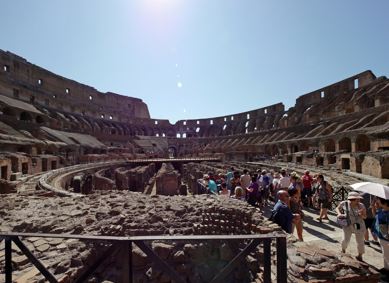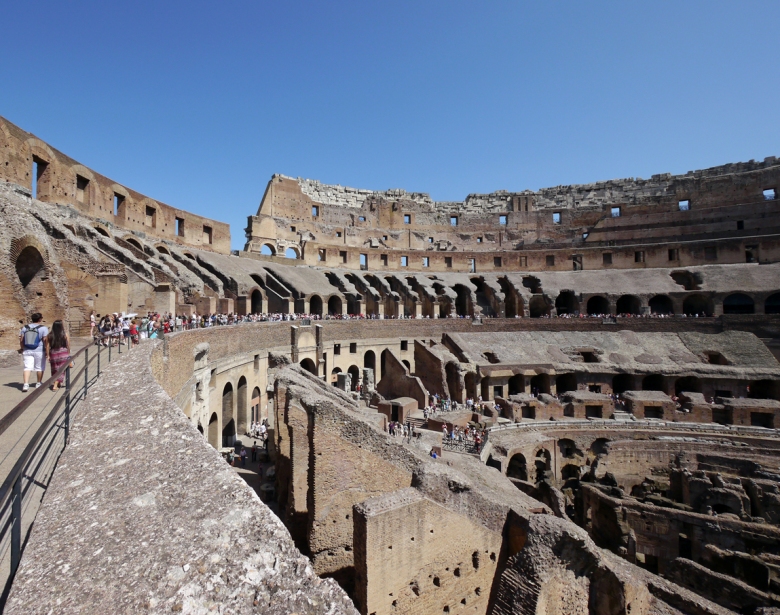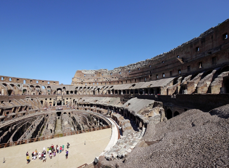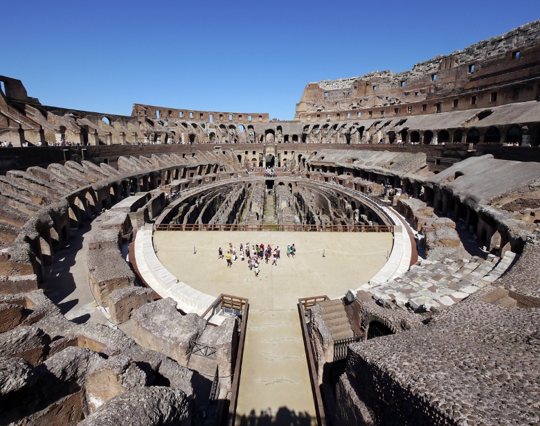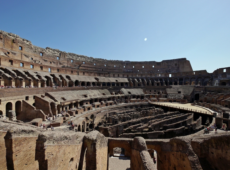 コロッセオは、第9代ローマ皇帝ウェスパシアヌスから建設され、第10代皇帝ティトゥスによって使用が始められました。