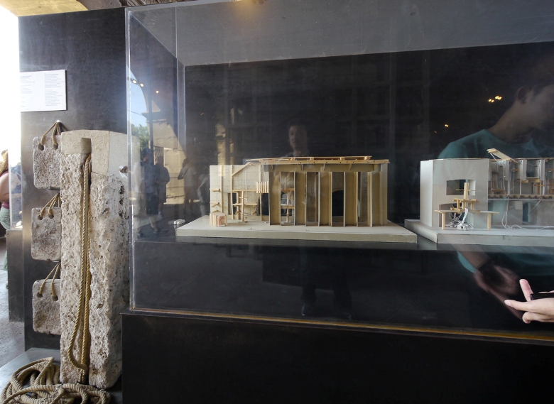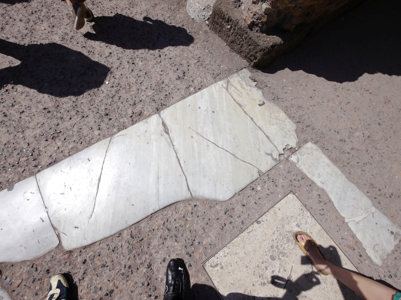 地下施設の上の床が大理石で一部再現されています。
