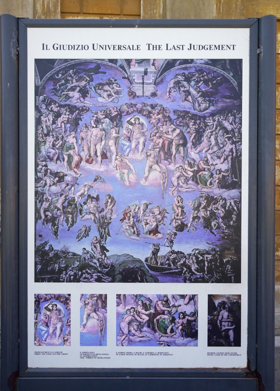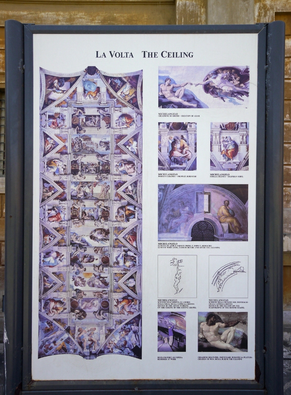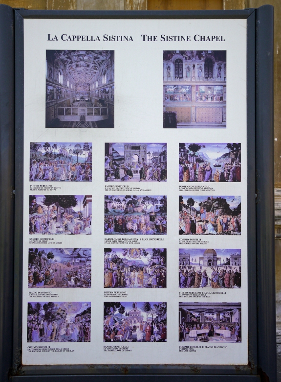 システィーナ礼拝堂内は撮影禁止。中庭にあるボード写真で確認出来ます。