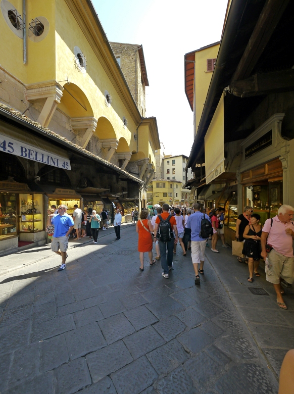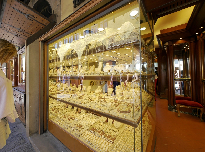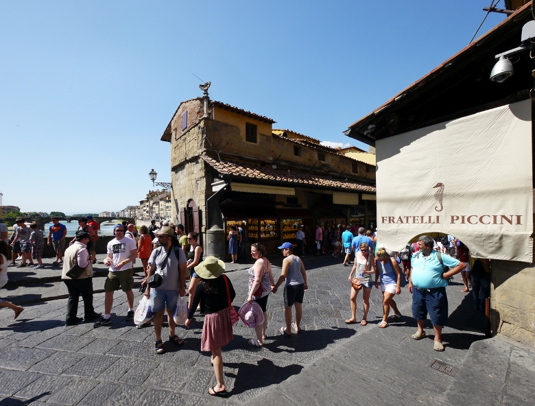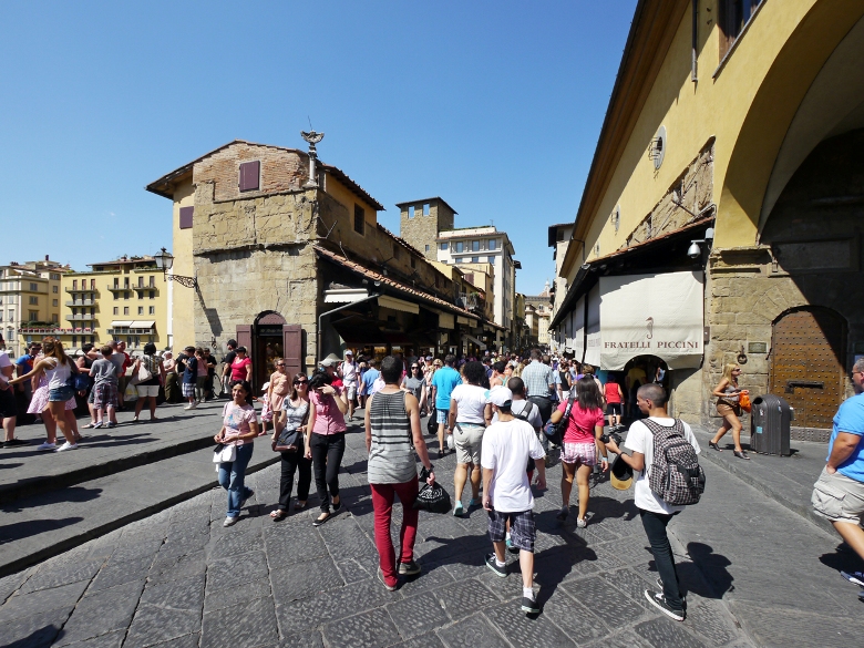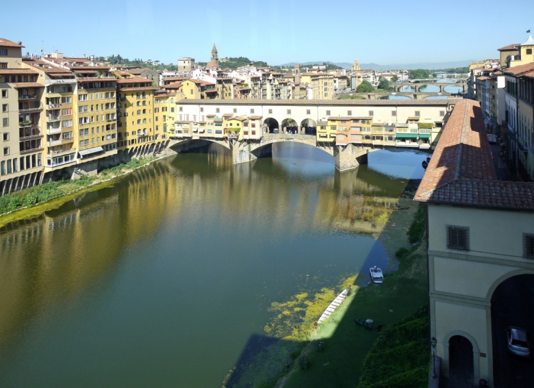 フィレンツェで一番古い橋で、現在では宝飾店が軒を連ねています。橋の上部にあるヴァザーリの回廊は、当時メディチ家がヴィッティ宮殿からヴァッキオ宮殿などへ移動する際に使用しました。
