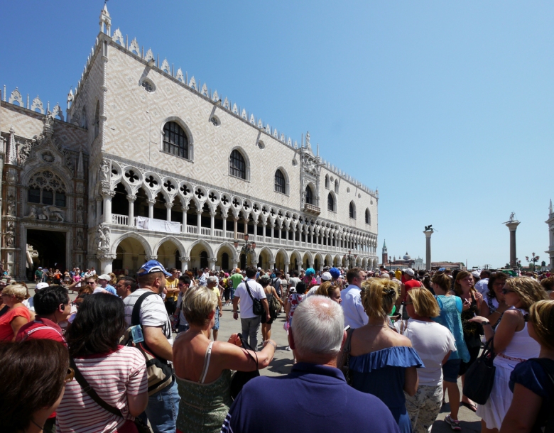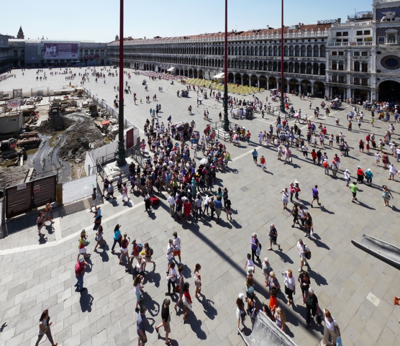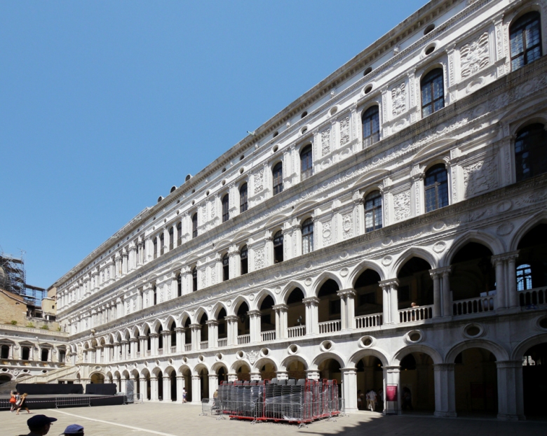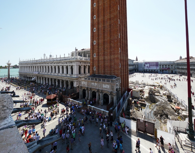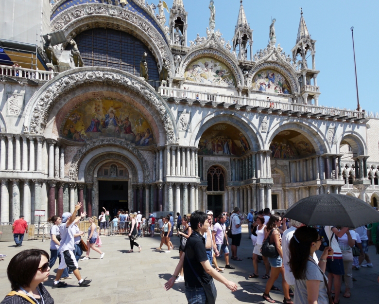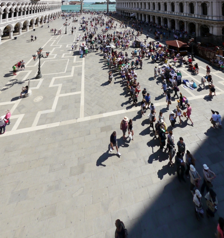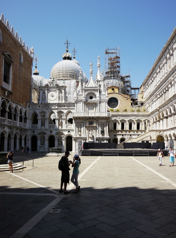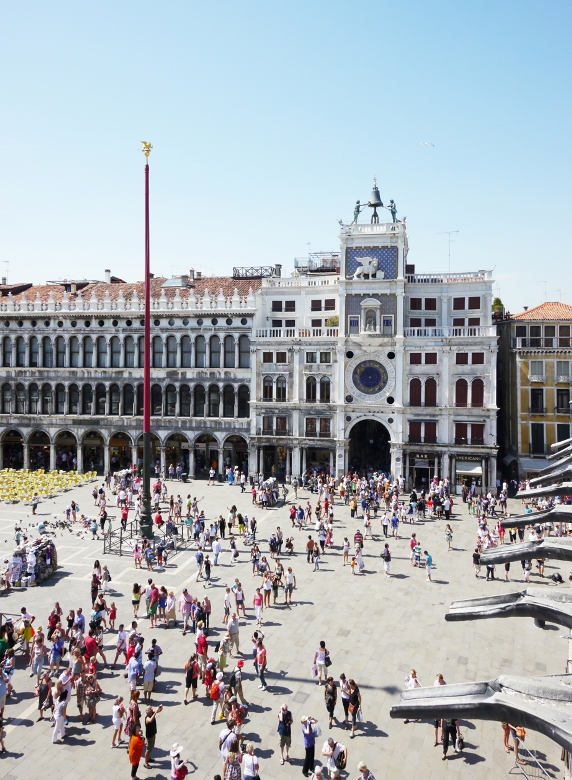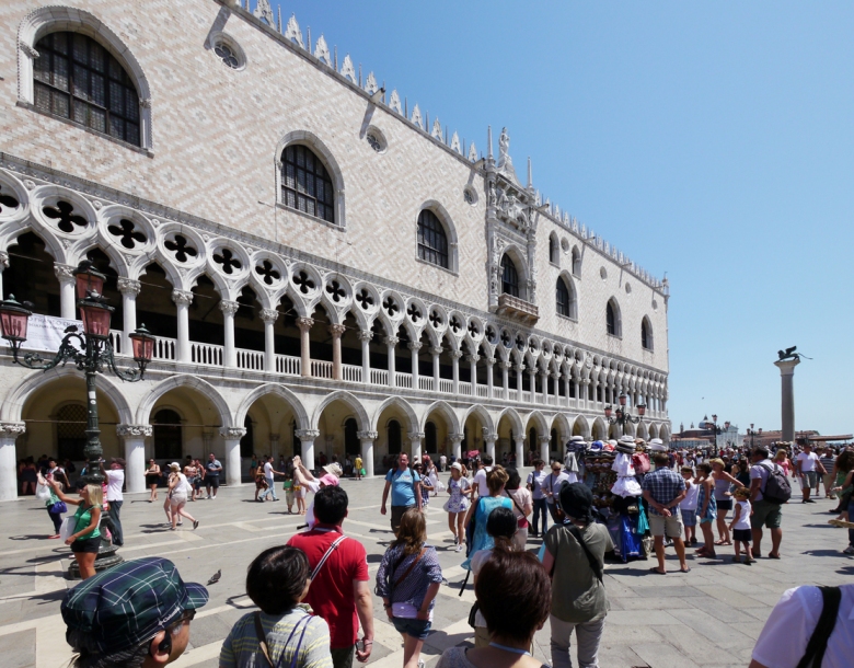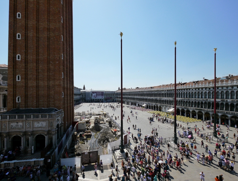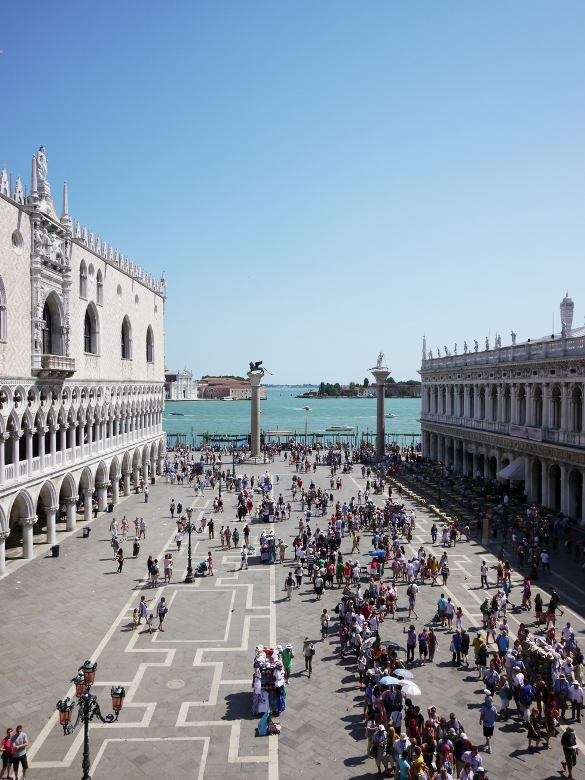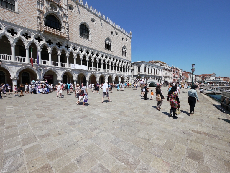 全体にはL字の広場になっており、回廊のある建物に囲まれています。広場にはサン・マルコ寺院、ドゥカーレ宮殿などがあります。