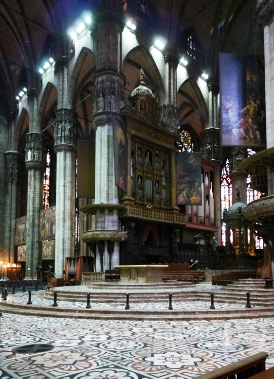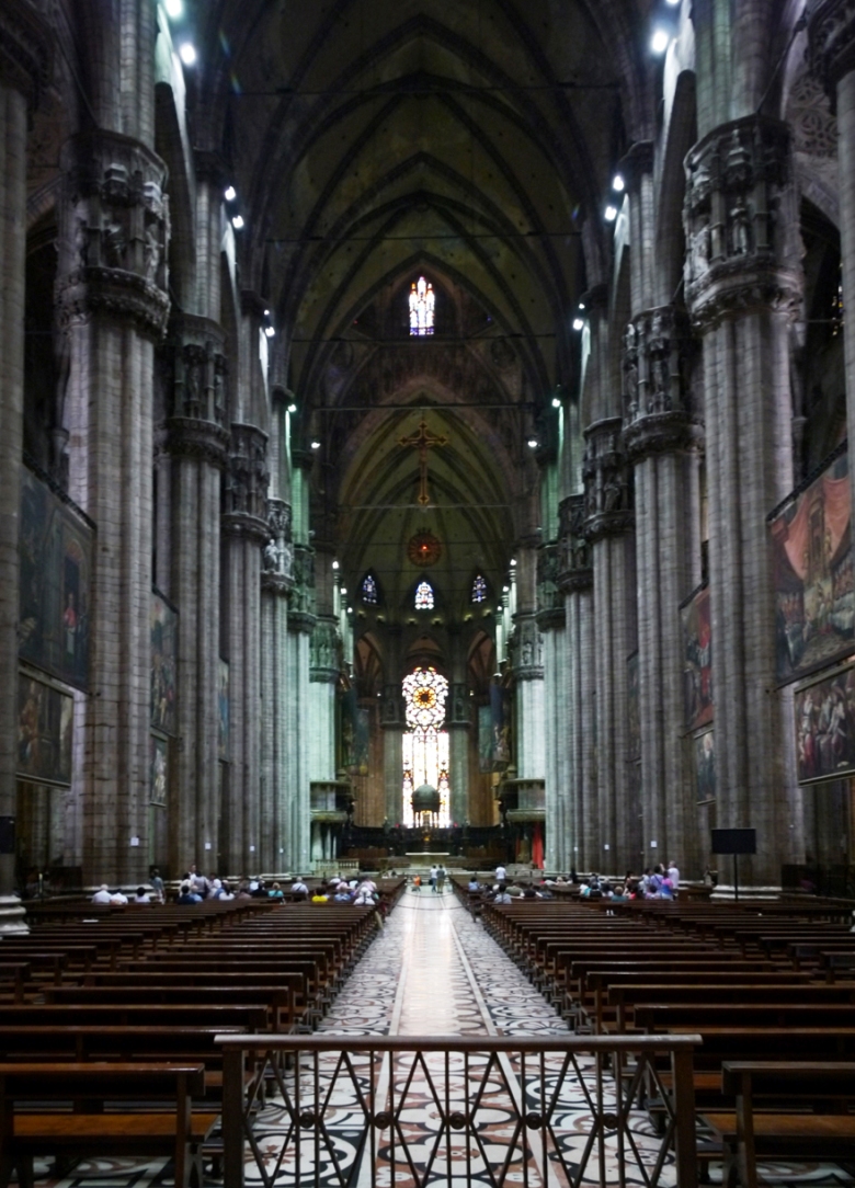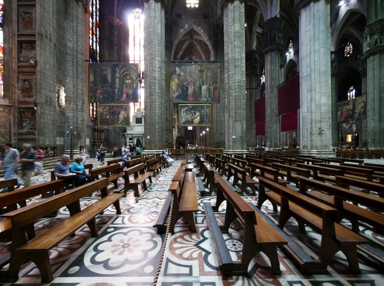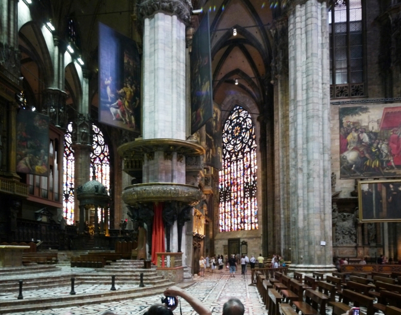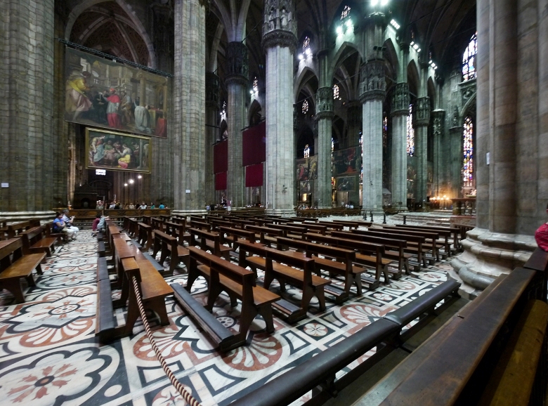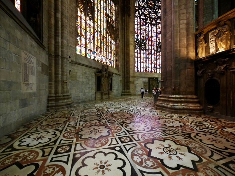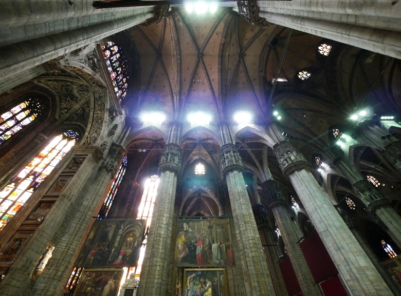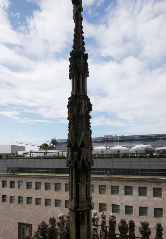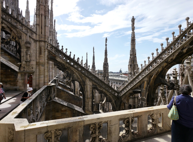 ミラノのドゥオモは1386年から建築され、約500年後の19世紀に完成した世界最大級のゴシック建築です。都市の中心に位置し、ミラノのシンボルになっている大聖堂です。 135本もある尖塔や彫刻などの装飾が美しい。