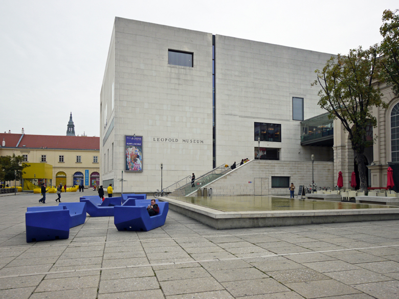 レオポルト美術館は、ミュージアムクォーターの中にあります。 文化芸術区画には、バロック建築から現代建築まで、いろいろな様式の美術館があります。 ここではエゴン・シーレ、クリムトなどの作品を見ることが出来ます。